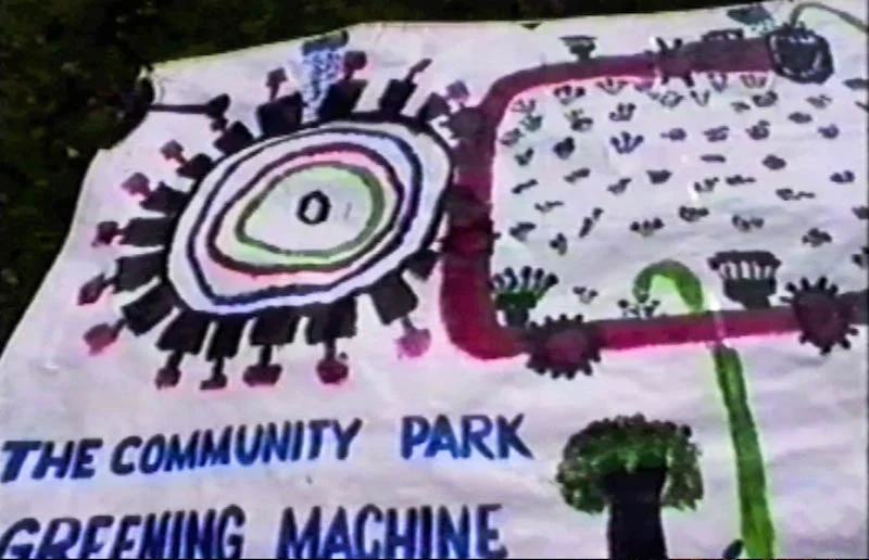 Organised by Jean Stuart, residents formed a committee and built and cultivated the park: they also built a barbecue (with a manhole cover as the hot plate), held tip-and-run cricket matches, and applauded the leading bands who rehearsed here with musicians living in the Cross and Scott Street squat.